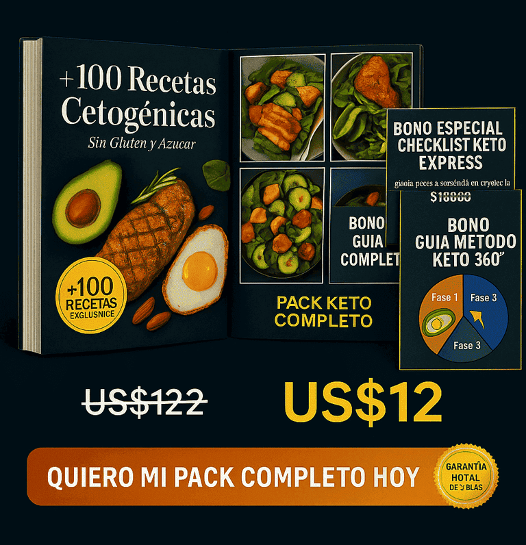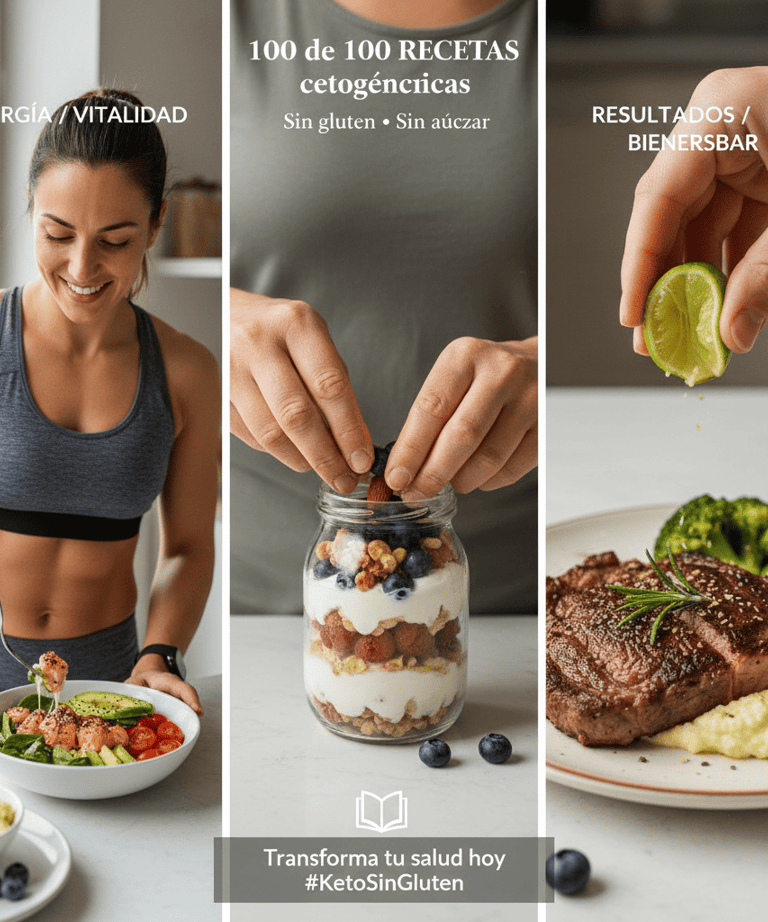 “Pierde peso y gana energía con +100 recetas keto sin azúcar ni gluten.”